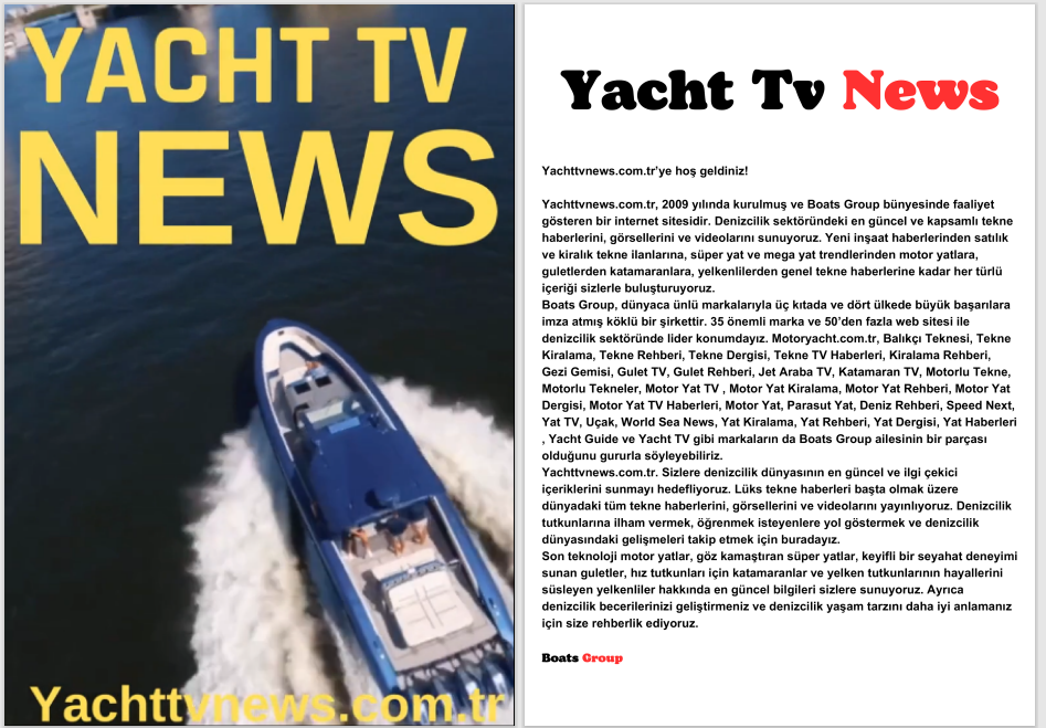 We broadcast your products and services to a wide audience through 19 local Turkish and 51 international English-language web platforms. Whether it’s rental and sale of boats, sailboats, motor yachts, catamarans, inflatable boats, or marine engines, we promote your offerings globally. Additionally, we amplify your news on boat and yacht materials with highly effective SEO-focused content.